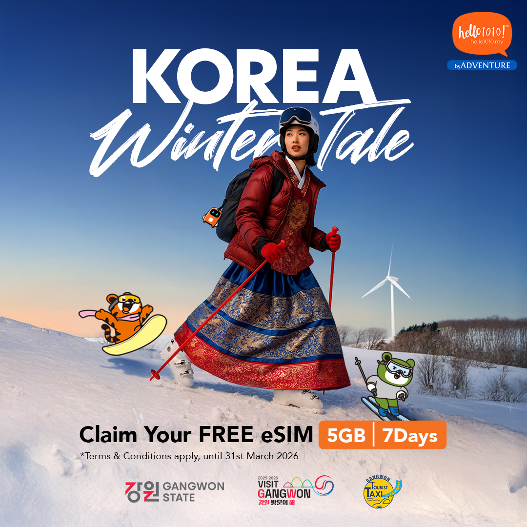 Annyeong Kawan! We’re delighted to begin Korea’s winter tale in Gangwon with you! As part of 2025-2026 Visit Gangwon Year, Malaysian Free & Easy Travellers can redeem a FREE 5GB / 7-day eSIM to stay connected and share every snowy moment. Travel period: 1 December 2025 – 31 March 2026 Get your FREE eSIM now! Terms & Conditions Apply* Wait… there’s more! 📸 Share your Gangwon moments with us and stand a chance to win exclusive gifts like Gangwon Mascot Pillow or BTS-themed souvenirs. Stay tuned for more details! Your winter, together in Gangwon. Stay updated: visitgangwon_en gogogangwon