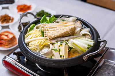 Grains and nuts, such as sweet rice, chestnuts, and jujube are wrapped in a lotus leaf and steamed. The lotus leaf rice originated from the packed lunch that monks had as they used to wrap rice in a lotus leaf, particularly during the hot and humid summer since lotus leaves' antibacterial and anti-septic quality prevented rice from going bad. There are many lotus leaf rice restaurants in Gimje, Jeonbuk State or Buyeo, Chuncheongnam-do.