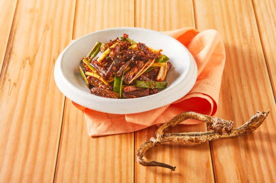 This dish involves mixing beef tartare with shredded vegetables in spicy cold noodles. The sweet, sour, and spicy broth; crisp vegetables; and light and tender meat create a delightful trio. Add chewy noodles to this combination to enjoy a hearty meal.