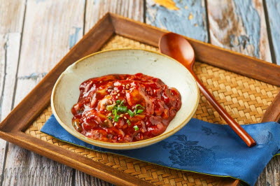 This kimchi is enjoyed in Jeolla-do Province. The crisp texture and bitter flavor unique to leaf mustard have a unique charm. Red chili powder and seasoning with generous amounts of salted seafood are added to make the flavors rich. As the kimchi ripens, the flavors deepen.