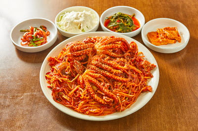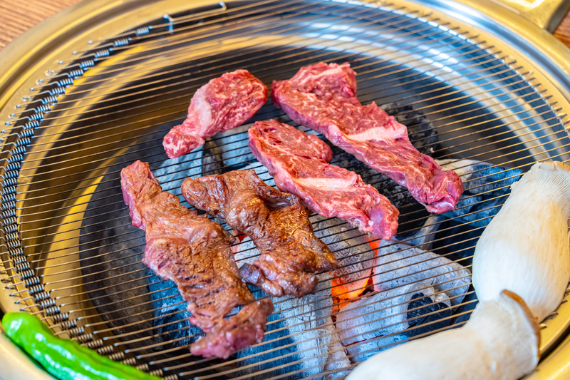 Grilled short ribs is not a traditional dish but a food made in contemporary times. Much like L.A. galbi, it uses rib numbers 6, 7, and 8, which are tender and chewy among ribs. L.A. galbi is cut horizontally and contains several bones in the meat, while Grilled short ribs is cut vertically and resembles meat attached to one long bone. It is a dish that maximizes the taste of eating chewy meat on bones. While grilling the meat, the bone’s flavor naturally permeates it, making it taste even better. Grilling garlic, green onions, and rice cake sticks together with the meat is also delicious.