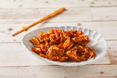 A pan-fried mandu with spicy sauce is commonly found in snack stalls, where mandu is pan-fried until crisp and then tossed in spicy sauce. The most important thing in this dish is to strike that delicate balance between the crispy exterior of the mandu and the flavors of red chili paste–based sauce, which must be spread evenly across the surface. It is somewhat similar to the common practice of dipping pan-fried mandu in tteokbokki, which often results in soggy mandu. However, this dish retains its crispiness better, so it can offer a new kind of flavor to the discerning diner.