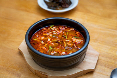This traditional sweets is made by mixing rice powder and powdered soybean into a dough, steamed, then when it dries is grilled. Afterward, it is glazed with malt syrup and rolled into a puffed rice powder. Malt syrup-glazed soybean chips are traditional sweets from Sunchang, Jeonbuk State. Unlike other similar sweets, malt syrup-glazed soybean chips are not deep-fried but grilled, giving them a cleaner flavor. A dough is formed from powdered soybeans, sweet rice powder, and water, which is then rolled out into a thin sheet, sliced into diamond-shaped chips, and left to dry. The chips are grilled, glazed with starch or malt syrup, then rolled in a puffed rice powder. This dish is known as “Kongkkaejal” in Jeonbuk State and “Kongyugwa” in Jeollanam-do. Each bite comes with a chewy and crispy texture, filled with a deeply rich flavor from the powdered soybeans.