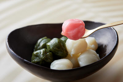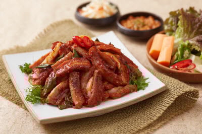“Hotteok,” or honey-filled pancake, is a popular street dish in Korea. Wheat or glutinous rice dough filled with sugar is pressed and fried in oil. The original honey-filled pancake is fried on an oiled griddle until crispy. Busan-style honey-filled pancake is instead deep-fried in oil. Each pancake, fresh from the griddle, oozes with molten brown sugar, whose appearance has been likened to honey. Each bite fills one’s mouth with moist and chewy pancake and sweet sugar syrup.