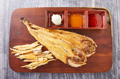 This is a rice cake made from a dough featuring sweet rice powder, soybean, chestnut, jujube, and red beans. It comes from the Chungcheong-do region, where it is also referred to as “modubaegi” or “modeumbaek.” The name “soemeori chaltteok” comes from its appearance, which is said to resemble boiled beef (“so”) head (“meori”) slices. True aficionados are said to wait for the rice cake to harden so that it can be cut into slices and roasted for even more flavor. Glutinous rice is soaked overnight, then ground finely. Then, fillings such as chestnuts, jujube, and beans are prepared, mixed with the other ingredients together into a dough, and steamed. The rice cake part is sweet and chewy, while black soybeans and jujube add richness and sweet notes.