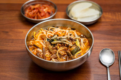 This mandu features skin made from potato starch, a distinguishing feature that takes on a remarkably chewy and elastic texture. The combination of the moist and savory filling and the chewy skin is nothing short of fantastic. Potatoes are widely used ingredient in Korean cuisine that was often refined into potato starch for long-term storage in the past. Potato starch is quite sticky in consistency and is used in dishes like potato rice cake, potato ball soup, and hand-pulled potato dough soup. Potato mandu makes for a perfect snack when one feels little hungry.