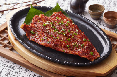 This is a folk dish originating from Gapyeong, a well-known cultivator of pine nuts. It is a bowl of noodles served in a cold pine nut soup made by finely grinding pine nuts. It is a high-protein, nutritious summer dish like its more well-known sibling, noodles in cold soybean soup. In comparison to the latter, noodles in cold pine nut soup is richer and cleaner in taste. Pine nuts have a unique flavor that helps recover one’s appetite and stamina. To make the soup, pine nuts are hulled, cleaned, finely ground, and sieved two or three times with water. The soup is then added to a bowl of noodles, garnished with cucumber, with a dash of salt.