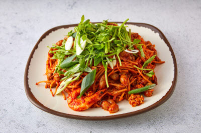Enjoyed in the city of Daegu, the base for this folk dish is anchovy broth. Bring the anchovy broth to a boil, add handmade noodles and vegetables, and plate it in a bowl. Vegetables used for this dish differ from house to house, with cabbage, pumpkin, and chives being the popular candidates. The noodles are light in taste, the soup is refreshing, and the cabbage and vegetables add notes of sweetness. The people of Daegu share an extraordinary passion for noodles. The city is full of old restaurants serving decades of tradition in its noodle soup. The most famous among them can be found in the “Noodles Alley,” located between District 1 and 4 of Seomun Market. Daegu noodle soup is sold by scores of streetside vendors, and one can hardly find a seat during lunchtime.
