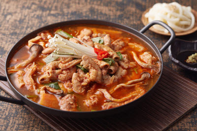 This dish is made by braising mussels in a soy sauce-based sauce. Its sweet and salty flavor makes it a great side dish. “Cho” of the Korean name for this dish, “honghapcho,” refers to a cooking method of braising in soy sauce. The sauce is made with soy sauce, sugar, green onion, garlic, starch, ginger, black pepper powder, sesame oil, and sesame seeds. Mussels are first cleaned, then parboiled in salt water. Then, the sauce is brought to a boil, and mussels are added and then braised while stirring. Once the mussels darkens soaked in the sauce, mixed starch and water are added, then finished with sesame oil and powdered pine nuts.