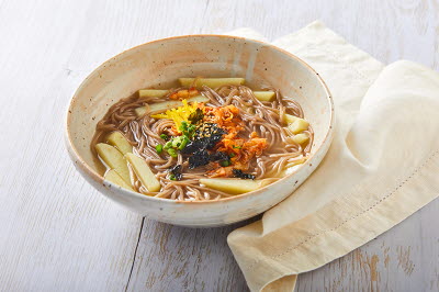 Boiled puffer fish slices is prepared by cutting cleaned puffer fish into large pieces, briefly blanching them in boiling water, then cooling before serving. The fish is accompanied by vegetables such as bean sprouts or chives and eaten with vinegar soy sauce (a tangy dipping sauce made by mixing soy sauce with vinegar and sugar) or mustard soy sauce. The flesh is firm and lean, while the skin has a chewy, gelatinous texture. Due to the fish's toxicity, it is always prepared by licensed chefs certified in puffer fish handling.